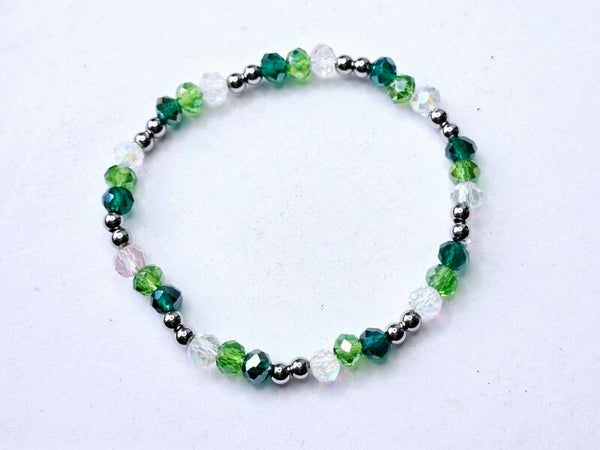 Armband gemaakt van Facet Kralen en rvs er in verwerkt van elastiek.