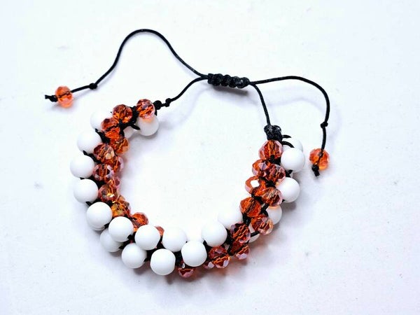 Armband gevlochten met Facetkralen en onyx edelstenen met macrame knoop