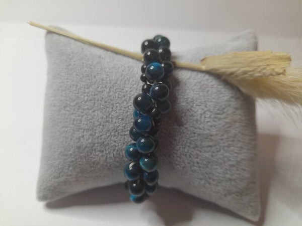 Deze Dames Armband is met gemaakt een verstelbare schuifknoop en een draai effect. In de Armband zijn edelstenen verwerkt en glaskralen.