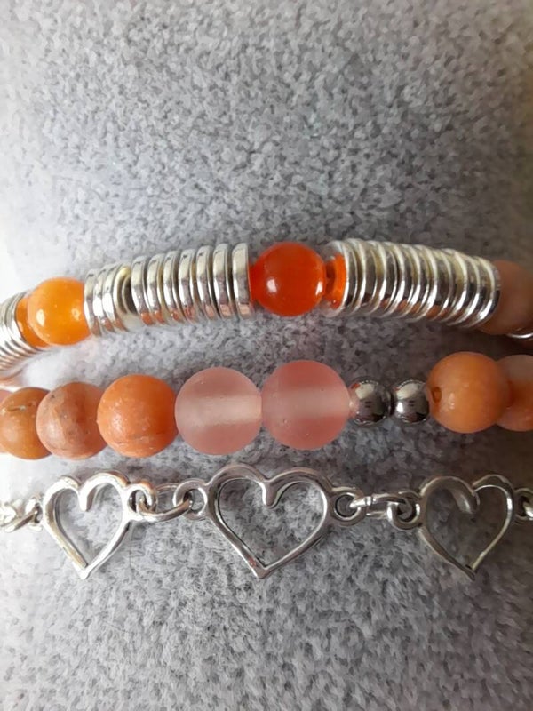 Deze Dames Armband set is gemaakt van Matte Edelstenen met zilver tinten erbij verwerkt zijn 2 met een verstelbare schuifknoop en met slotje